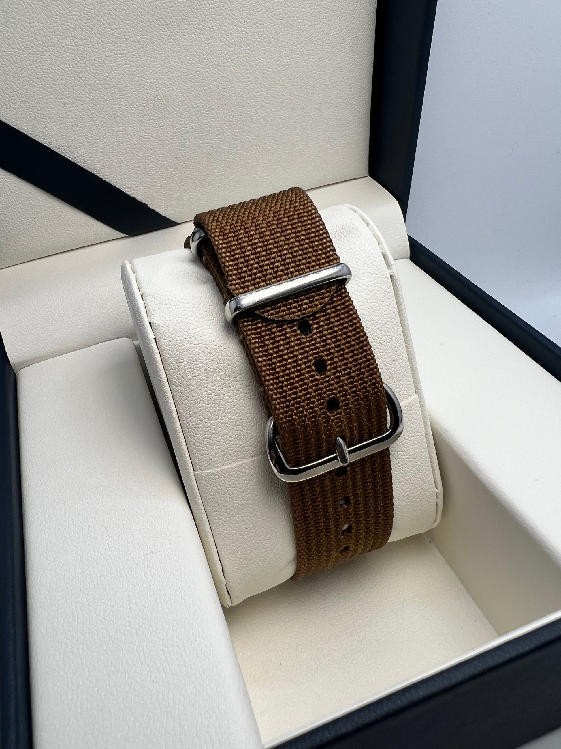 Comes with a Nato strap and a stainless steel Jubilee bracelet.